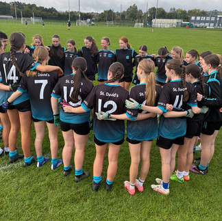 On the 1st of October, the Junior Girls' Gaelic team took on GCC in Éire Óg. It was a hard fought victory for St. David's, as they contended with wet and muddy conditions. Moya Marrianan set the tempo with an excellent point within the first few minutes, followed by a point from Poppy Smith and Isobel Keating. These scores raised the atmosphere at Eire Óg and kept our clean sheet going into the second half.