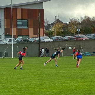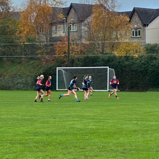 The play was back and forth between the two teams, and unfortunately a few scores were conceded. The girls' heads never dropped and we had some outstanding saves from Ciara Fitzgerald who stepped up to be goalkeeper in the first half. The chances kept coming for David's, as more points were scored by Aoife Fox, Lauren O’Leary and Moya Marrinan. The first half finished 3-6 to 4-4 in St. David's favor.