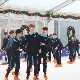 At precisely 12:15 the students gathered outside the cinema and had their attendance taken. Once everyone was accounted for they walked to the ice rink which was less than three minutes away. Once the students arrived they received and put on their fabulous orange ice skates. At 1 o'clock the rink opened and the TYs eagerly began to skate, however, it's fair to say everyone got off on a wobbly start!